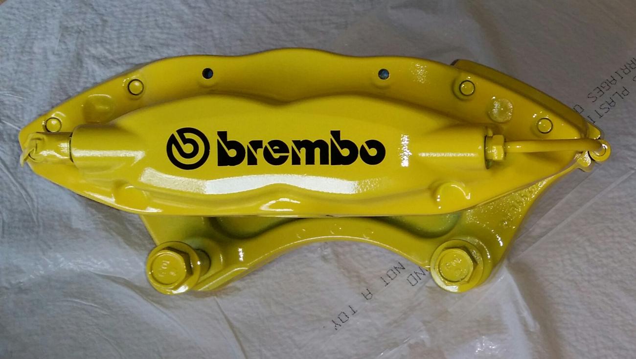 I'm pulling my calipers today and having them powder coated. I work with an engineer who powder coats on the side and will do all four for $160! Stay tuned. I'll post the results. eBay seems to be the place to by the Brembo decals. They are rated for high temps and seem to work pretty well.