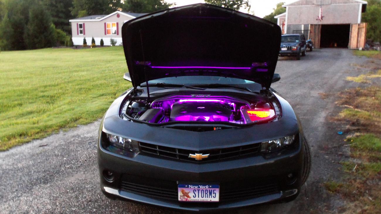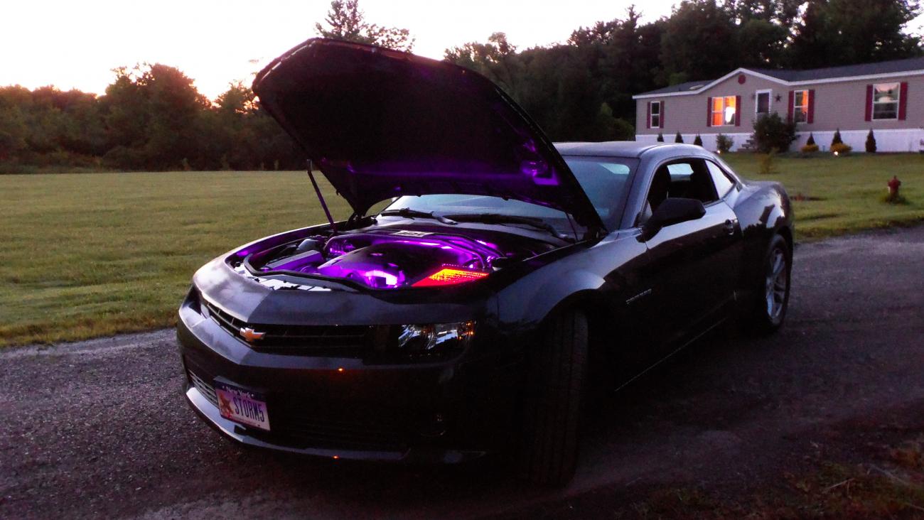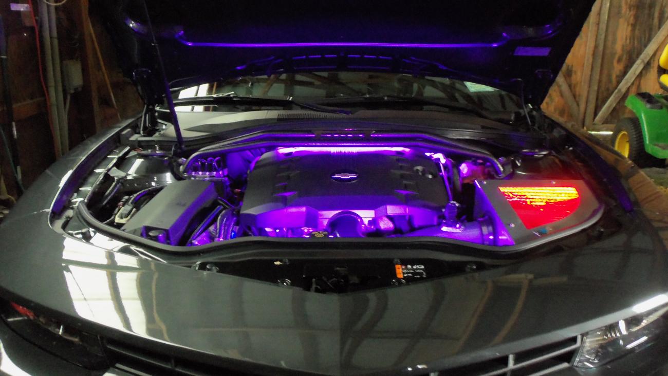 Installed under hood LED lights in purple. the pics look more blue but in person they are purple. kit has a nice hood switch so the lights come on when the hood is opened.