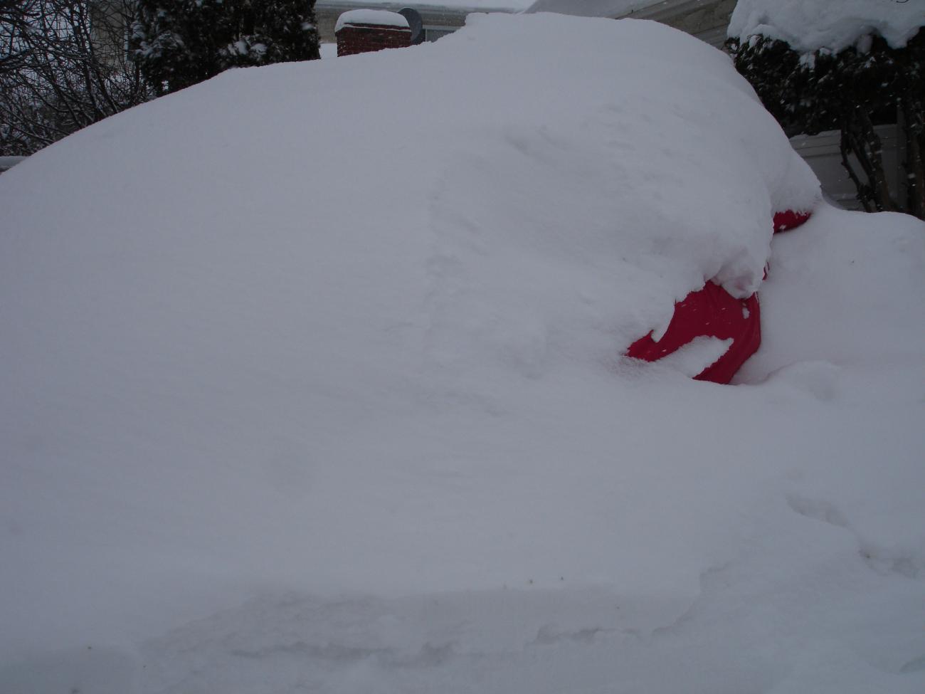 Around my house last night probably about 1 inch of sleet. Right outside my garage door it drifted to about 6 inches. But my car, newly waxed on Saturday, remains inside. Maybe tomorrow I'll venture out.
