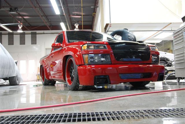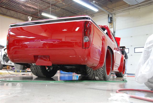 Here are some more updates on the truck...these are assembly shots just before the truck was taken to Performance World in Toronto. As you can see, the frame pic has the road race tire set up with the Nitto's and the final assembly shot is the wheel set up for the "pro touring" look...here we run M/T's Sportsman S/R 31x16R20's to give it some traction...