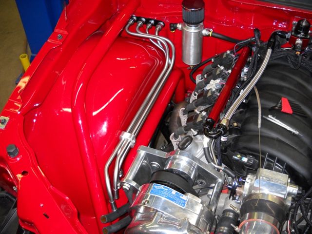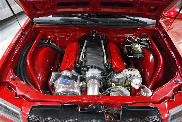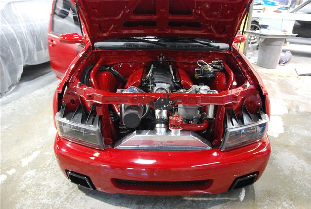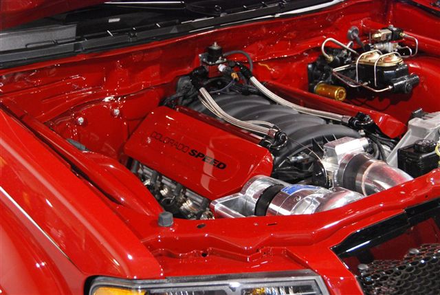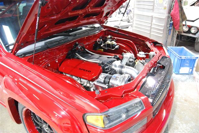 The built LS7 and F1A Pro Charger look right at home in the front of the truck...