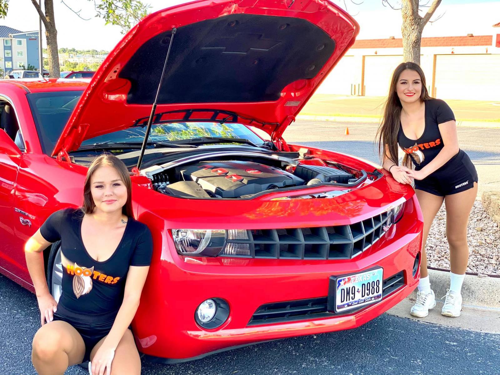 Wow! What a beautiful pic, ALL the way around!! Oh yea, I see the Camaro now! lol. Camaro looks amazing!! I wonder if every one has a Hooters pic. Gotta have one!! This one was a Mustang vs Camaro show, with a bikini contest after the show..