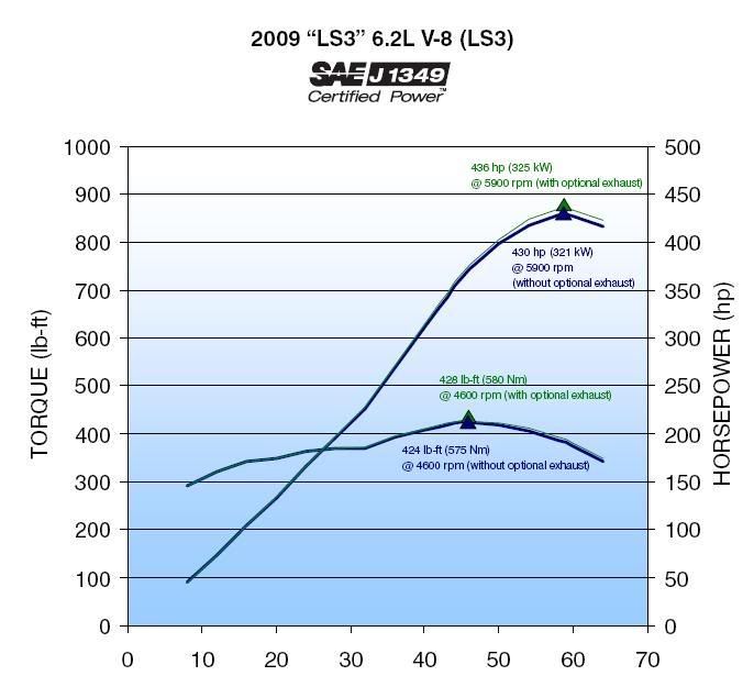 here is the dynochart in the gimped SAE test format for the ls3 in the corvette from GMpowertrain.com