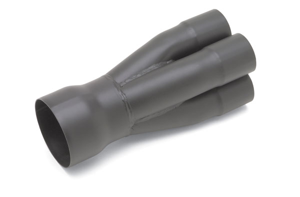 Below is a picture of Kooks standard (non merge) collector they used to put on headers, and the new stamped merge that comes standard on all their 2010 Camaro headers. A stamped merge collector is what Kooks and many of their competitors use. Just as the name indicates, this type of collector is stamped from basically a steel cone. This is the cheaper way to do a merge collector. A true race merge collector costs more because it is 4 pieces of pipe actually cut and welded togethor into a collector. A true race merge costs over $100 more than stamped ones for the consumer. As far as I know, no one offers a true race collector on their headers standard.