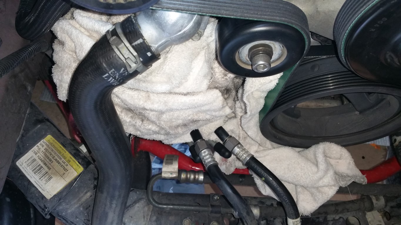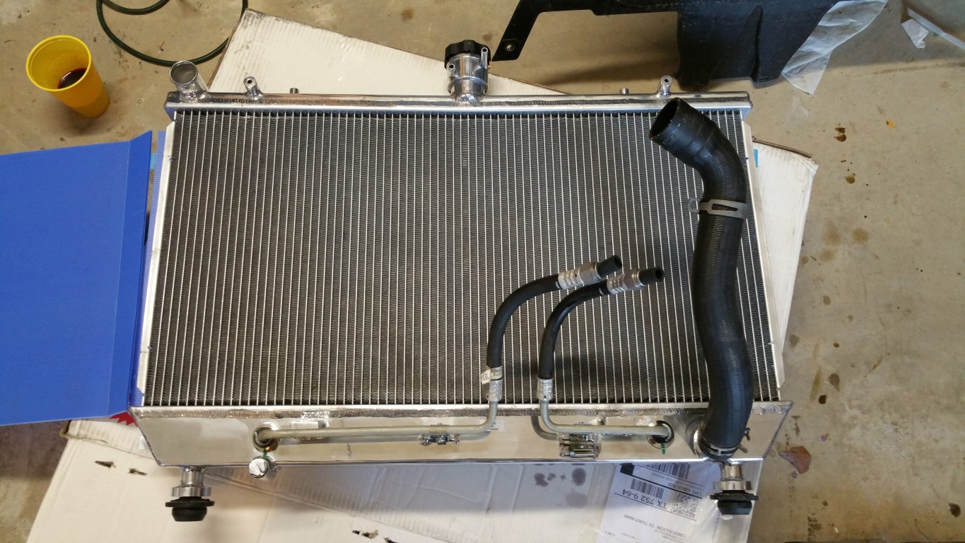 Well, my CSF Radiator came in from JDP today! Woot! So, basically drained, and removed the hoses, transmission lines (don't forget to plug them), DRAINED the transmission fluid out of the old radiator so I know at a minimum, how much to put back, then did the swap over: