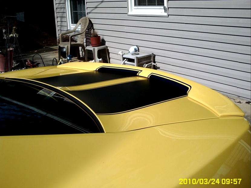 it was finally warm enough to paint my spoiler stripes on this morning, i decided to just do the short stripe extenions similar to the factory ones. i think for not being a professional painter it came out pretty well..
