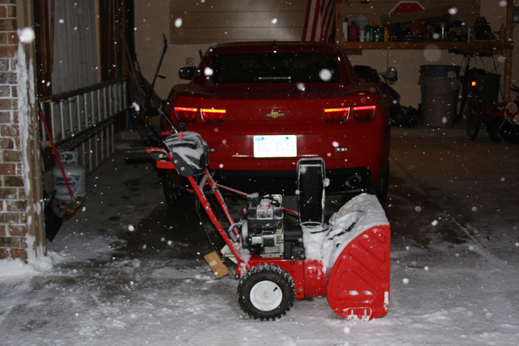 Well this isn't my Camaro in the snow, but it's pictures of our driveway + front yard from Saturday (Camaro's in the Garage )