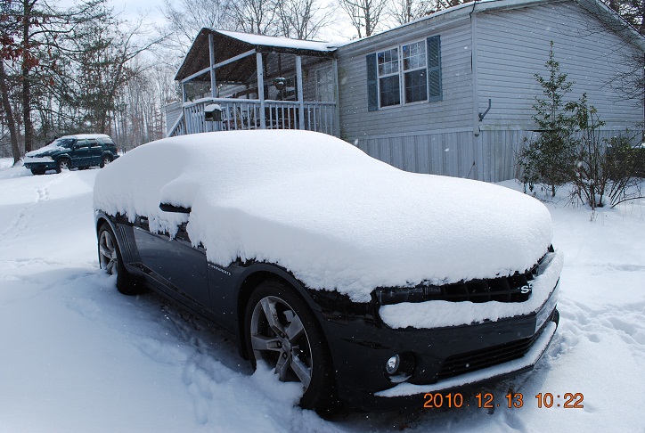 Here's what my Camaro looks like in the snow, and here's what it would look like if it was outside in the snow (like this poor orphan).