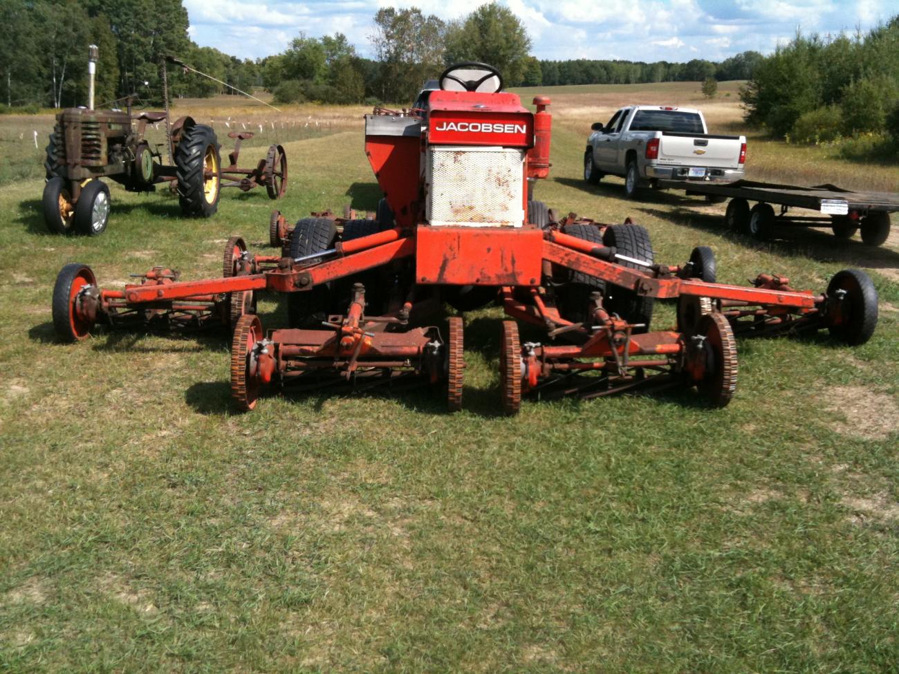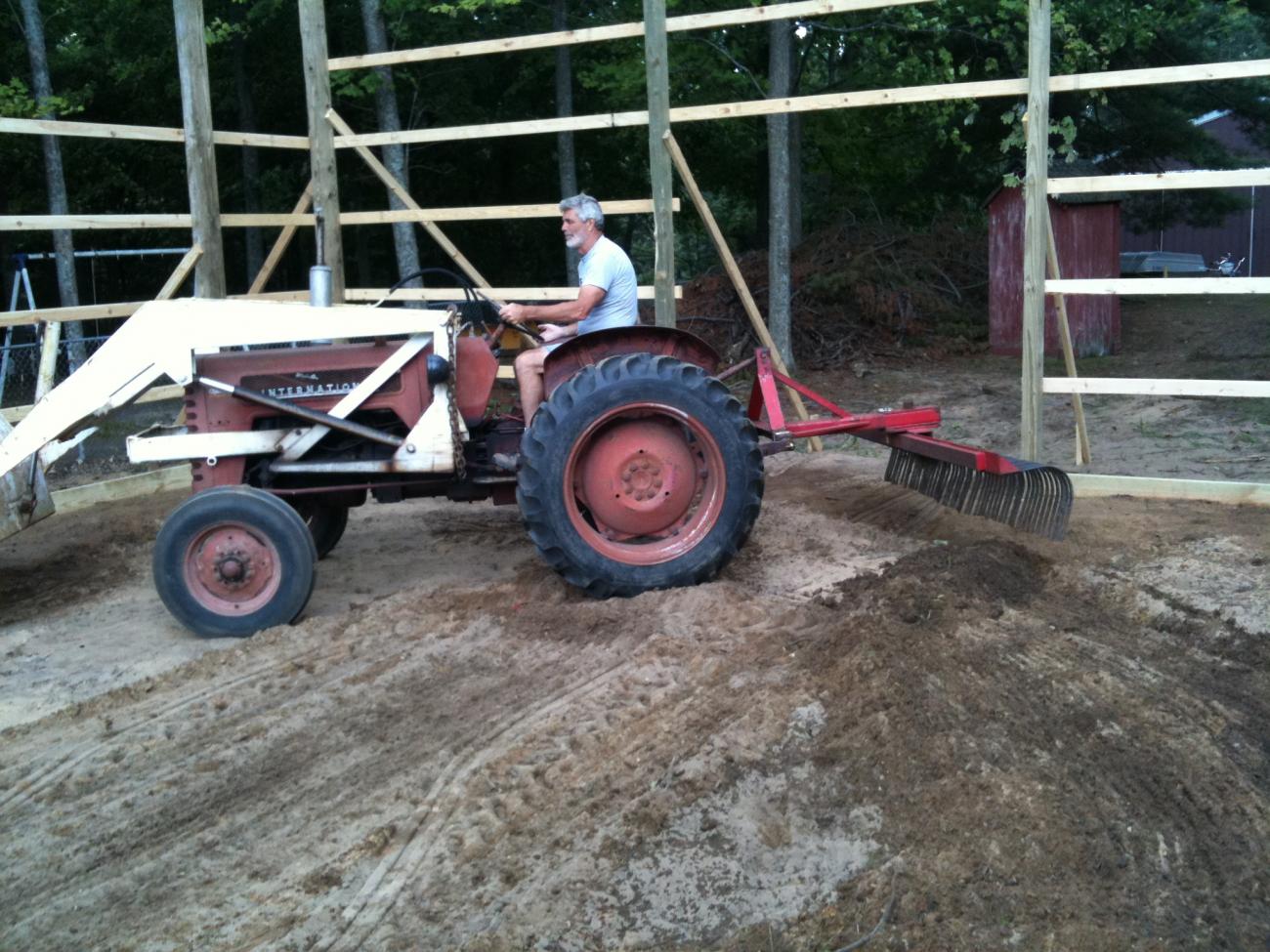Dad decided use the old International to push the trailer to the brush dump