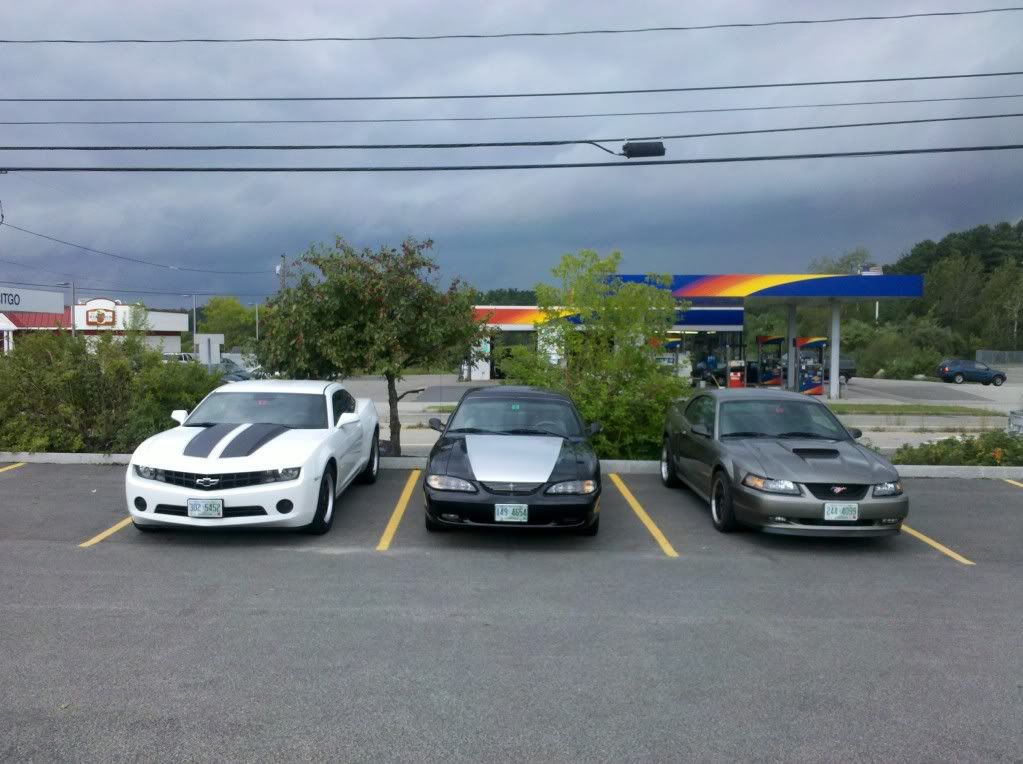 Here's a picture I took at the gym yesterday, the black 3rd gen Mustang is my best friend's and the 4th gen Stang parks next to us every day!
