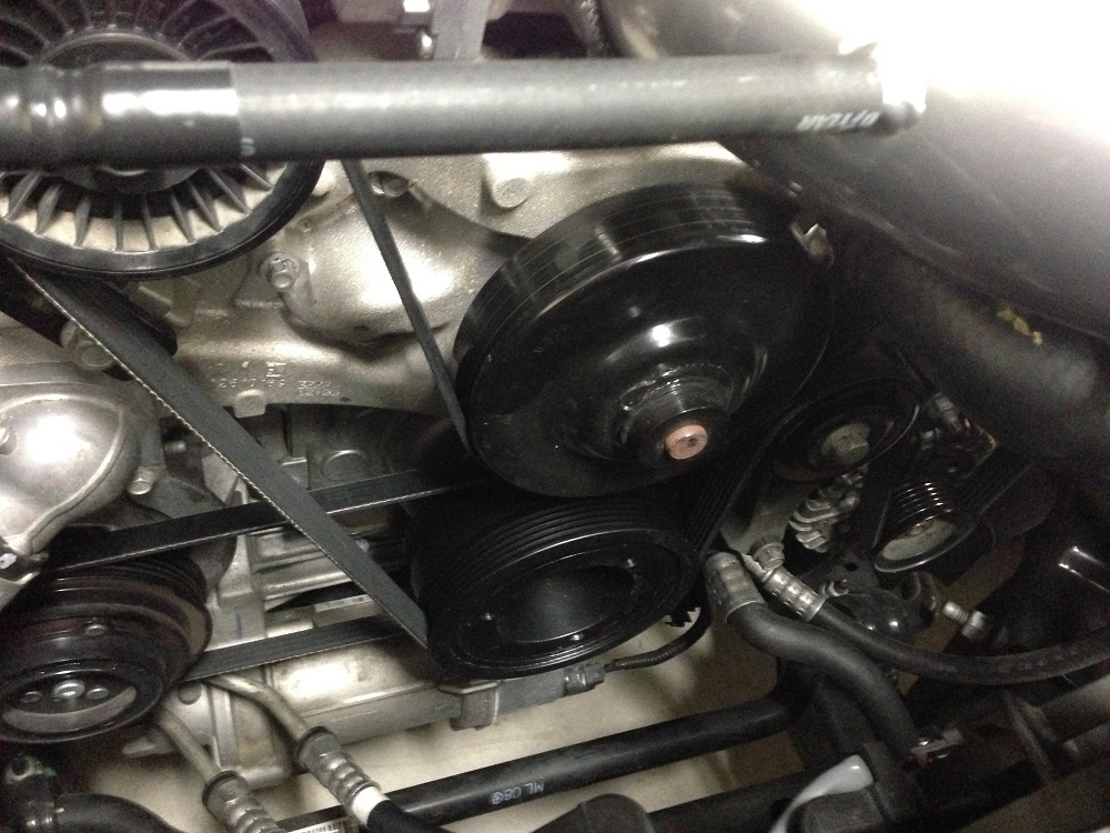 this thread helped a lot http://www.camaro5.com/forums/showthread.php?t=38661 the most important tip was to use the all-thread. I ended up using a stack of washers ~ 3in high as a spacer. good thing I had a pile of them in the garage. my car has electric steering, so I had to try several different belt lengths until I got the right ones. (AC belt is the same regardless of the PS type) http://www.camaro5.com/forums/showthread.php?t=364460 These are the belts that I ended up with Main: 6PK2020 ~ 79.53", AC: 4PK0890, ~ 35.04" oh, the AC belt walked right off using a body trim tool. I did not need to cut it off or buy the GM installation tool overall the job was pretty easy, once I got the puller sorted. I had to use a cheater on an 18in breaker bar to get the torque to yield bolt the full 220deg (if I recall correctly). I did not have the flywheel lock, only used the driveline, chocks and brakes I was surprised because there is a difference in the way the car pulls. it feels stronger on the butt dyno.