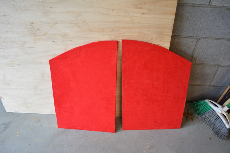 I then made the "trap door" pieces that would cover the stock wheel well cover. Sound deadened and covered in red microseude.