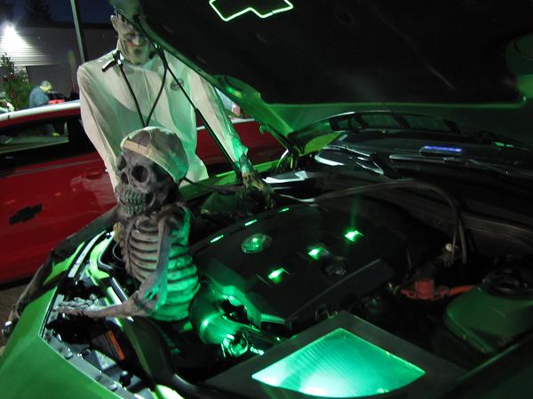 My current project is making an exact, or close to it, copy of my car by 1/18 scale from a jada model. It broke down into 47 pieces not counting screws. Gotta paint about 35 of them, and some multiple colors. Oh, its also gonna have LED's. RGB fog's headlights, wheels and foot wells... I have lost it! Gonna be a month or so on that one. Your Green LED theme is great, I mean really awesome! It looks great with the halloween theme too! Very nice! Quote:
