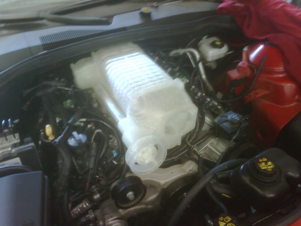 Here's a video of the 100% stock camaro with the a hand build test unit for development. This is not a production unit, as the production unit is the front entry compressor. But this is the same manifold, IC, SC rotors, stock TB, stock filter assembly (K&N element), stock exhaust..... |