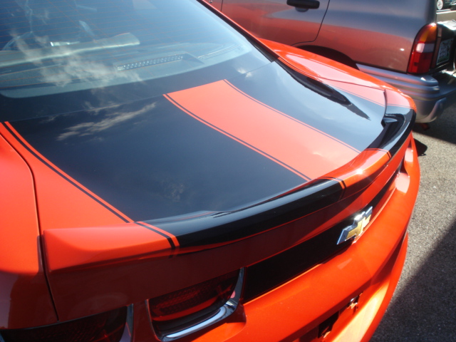 Well got pictures today of the painted stripes and rear deck. The painter has yet to paint the GFX because he doesn’t think I should go with the black and is trying to get me to change to body color. NOT Happening. Here are the teaser pics they sent over to ease my mind a bit while I wait for the GFX to get painted and installed. Hope I can get it this weekend. Nothing worse than making car payments for a car that I have yet to get the keys for.