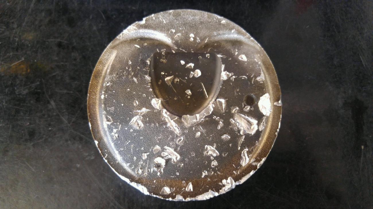 This is the #2 piston/rod, the one directly across from the bad one. Not a lot of detonation here, it's a little cleaner at the edges but ZERO metal errosion. I see no errosion in the failed piston either. More to come...