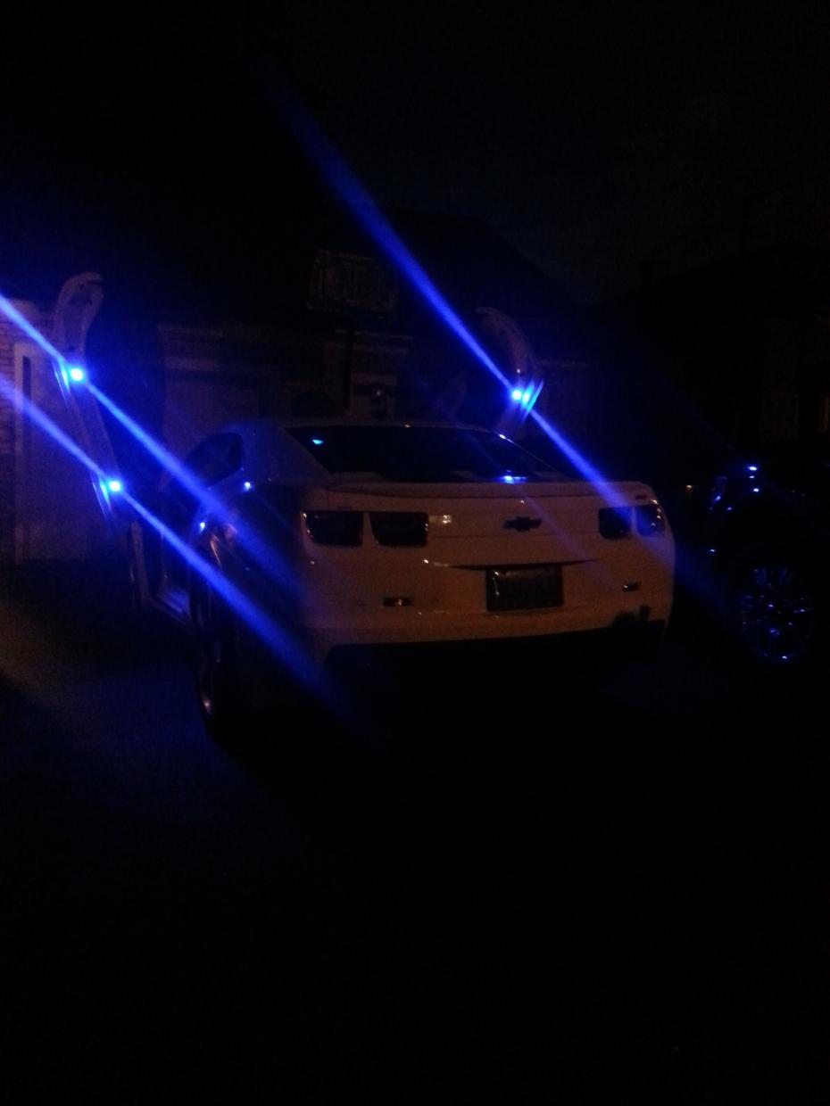 Went to check out my twin turbo which arrived at the shop and finally remembered to get some pictures of my custom door lights.