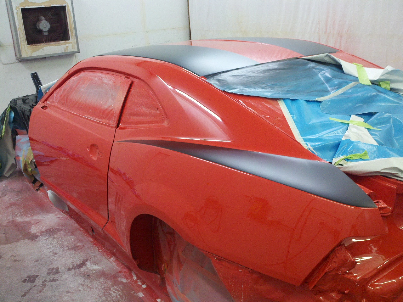 Finished putting my car back together. Car was white now it is Hugger Orange with painted on flat black stripes. My camera phone makes the car look red but it is orange.