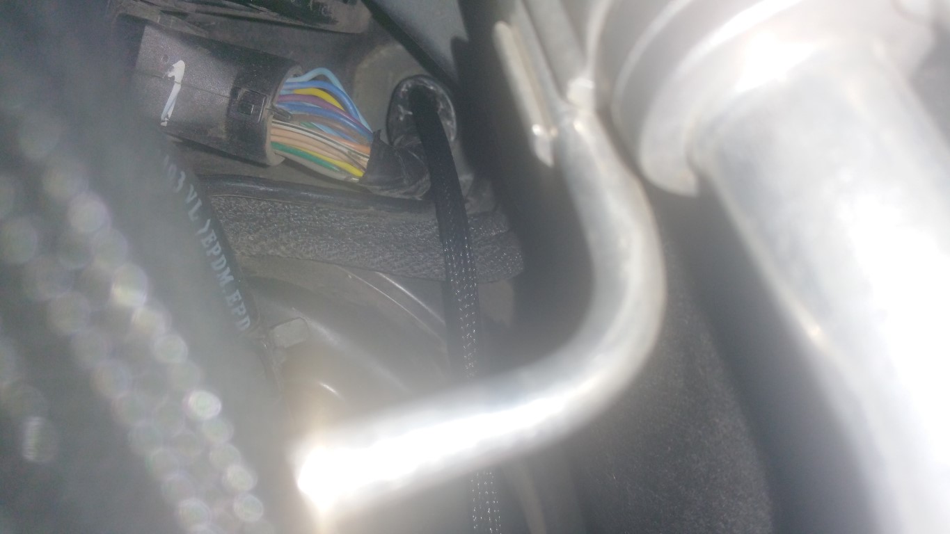 Started the CAI IAT sensor from AeroForce today. Had to run the wire to the inside. Finding the right spot was kinda easy, but hard to get it though. The area had a lot of tape on it and I was lucky to use a 'skewer' to ease it into the car.