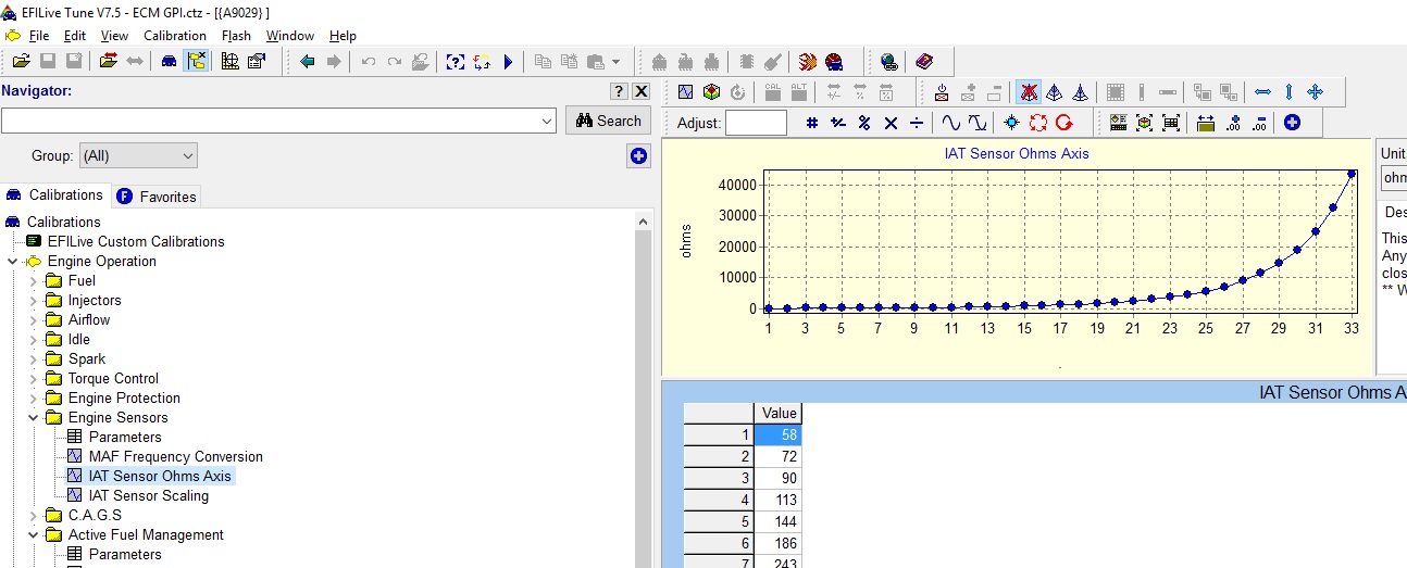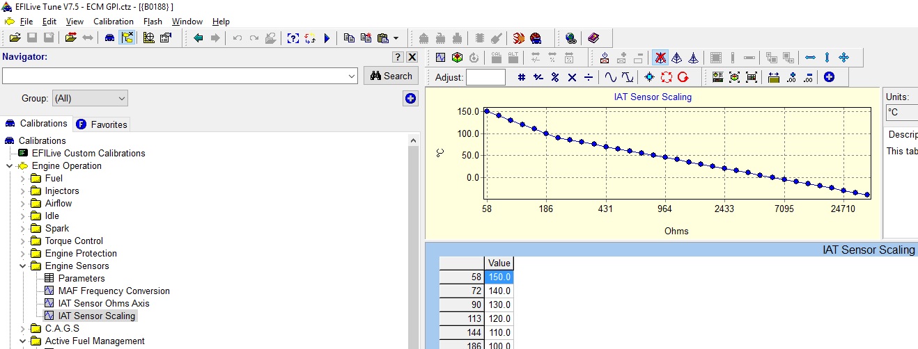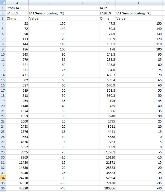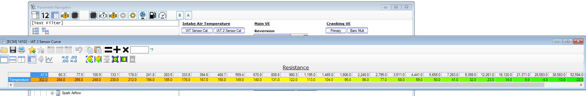 In HP Tuner advanced mode, you can find the IAT and IAT2 scaling here: ![]() IAT: ![]() IAT 2: ![]() And in EFI Live here: ![]() ![]() Now, using TTShovel's tune, I looked @ the HP Tuner IAT Sensor CAL, and IAT2 Sensor CAL, then Compared it to mine in EFI Live (both scales set to metric). The IAT Sensor CAL and my EFI Live IAT Sensor settings were the same. So, I created a spreadsheet and this is the scaling differences I found: ![]() With that said, once I confirm these are 'indeed' the correct scaling, then, in EFI Live, I should be able to set the IAT Sensor Ohms Axis to the Ohms in the IAT2 settings. The IAT Sensor Scaling should then be correctly set. Will wait to see what Ryan sets up for me, but that is what I've figured out so far. Will let you all know... -Don