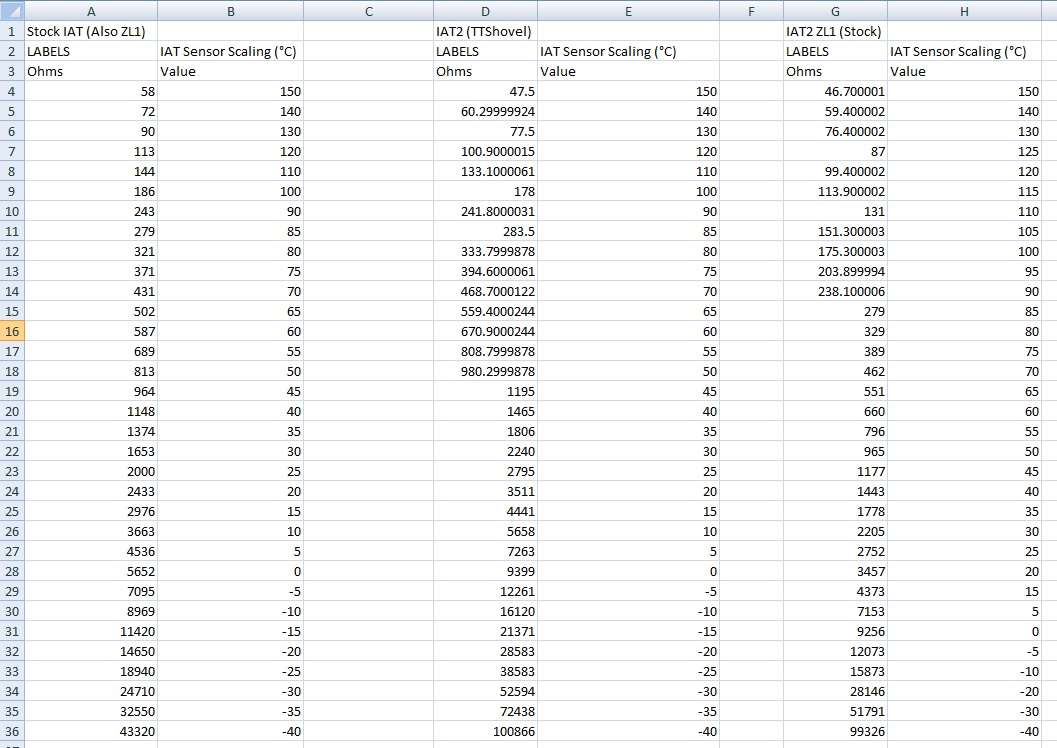 Found a stock ZL1 tune (auto! EFI Live) that has the actual IAT2 settings, added that to the spreadsheet -- a bit different!
