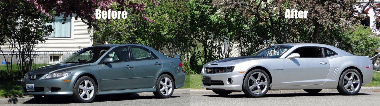 2005 Mazda 6. Sometimes I miss having four doors, but then I remember I now have enough horse power to put all 7 mustangs my friends have in their place.