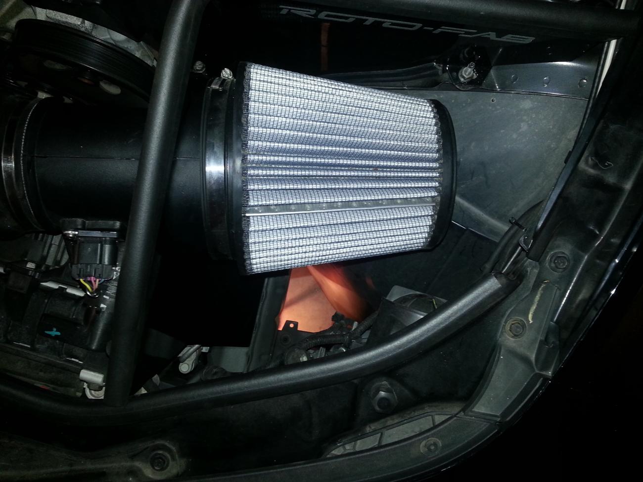 put some reflective insulation around the Roto Fab heat shield. then added a poor mans scoop for the CAI...just missing the scoop portion to direct the air up. but its a nice shot down to fresh air below the engine with plenty of fresh air gushing in from the front. not to get the relocated washer bottle.