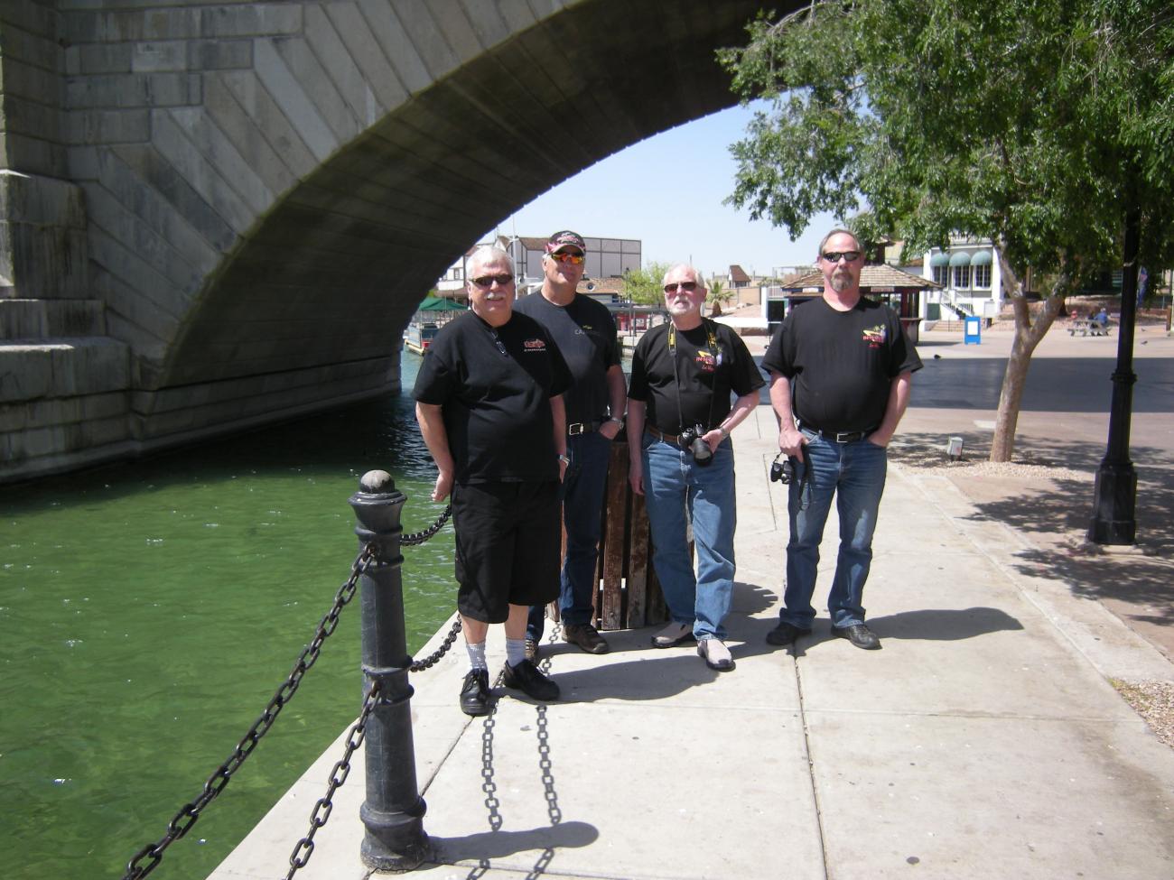 Here's a group shot on the way down at Laughlin for gas and then on to Lake Havasu to see the London Bridge.