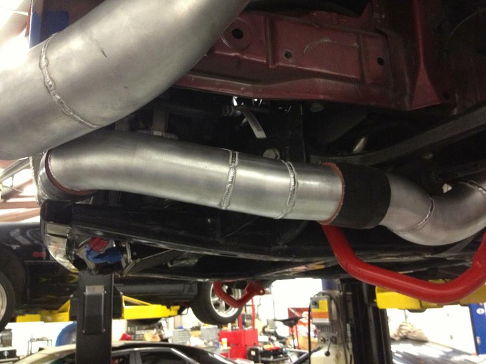 This shows the turbo on the drivers side installed, and the boost piping running forward....