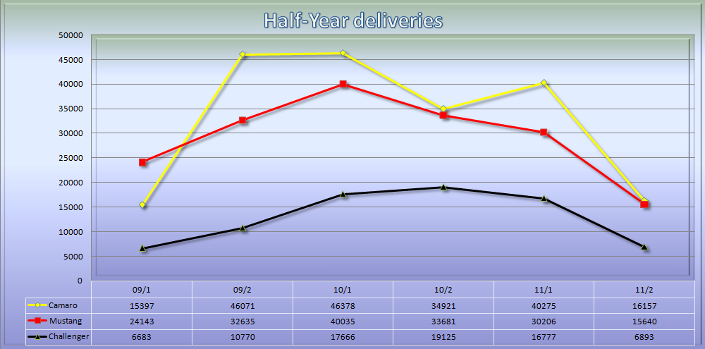 I am not sure if I can agree with you on the sales of this market segment being bad, when you consider how many sales existed in this market in 2006 compared to today. It was something like 160,000 units total in the entire market segment. Today that number is over 200,000 units in the market segment so it has grown and with the help of the Camaro and the Dodge Challenger. That is impressive especially if you consider the Mustang was selling those numbers when the US auto industry was bigger then it is today. The main reason for the growth of the segment though would have to come down to the Camaro which has peaked interest from demographics that weren't even interested in American cars. This segment has stolen sales from other market segments which is exactly what it needed to do. The Mustang is selling at the rate of Camaro (if you subtract the 10,000 difference in sales). At the same time the Camaro sales model was built around 8,000 to 10,000 units a month so they are also dealing with a production limitation. If they started to sell lets say 12,000 units a month they would have to expand production beyond what they planned to ever do. So to move the goal post to a mark where GM never intended for the Camaro to be at in a down economy really isn't realistic and is just you looking for any reason to call the Camaro a failure and the Mustang a success. The biggest flaw with the Mustang are its fans...... |