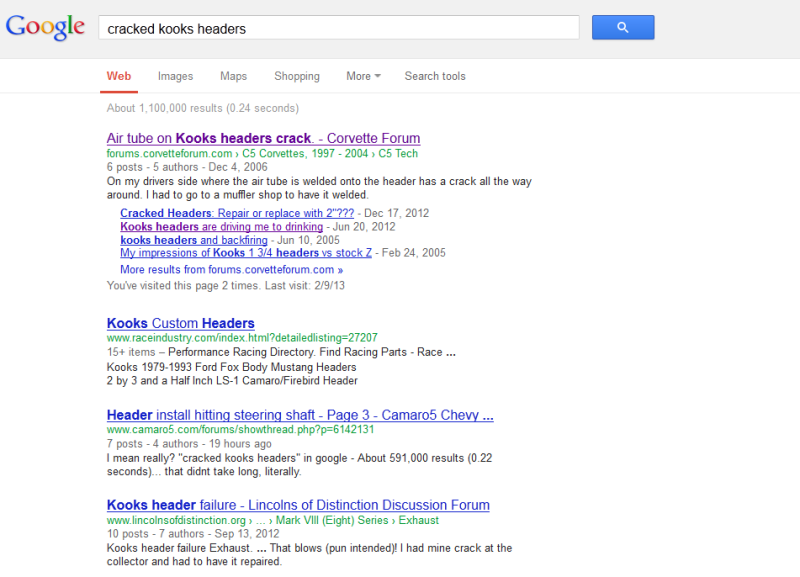 Yes, I did buy them knowing the welds would be unacceptable. I also know it doesn't cost 2,100 to make good welds. Being as your 2,200 kooks are about $100 of material and 2,100 in labor. Minus the cost of the cats of course. Thanks for displaying your douchefullness. - Clayton. Official C5Fail4 hater.