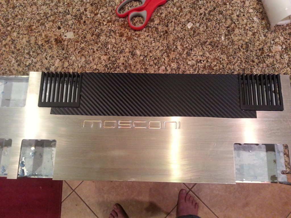 i've got an idea to replace the mosconi logo, so i gotta put that in the works. honestly, i think it looks awesome in person. yes, i know, it's not real carbon fiber... but... you can't say this amp doesn't look good... especially in person
