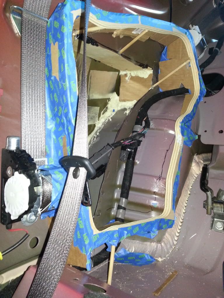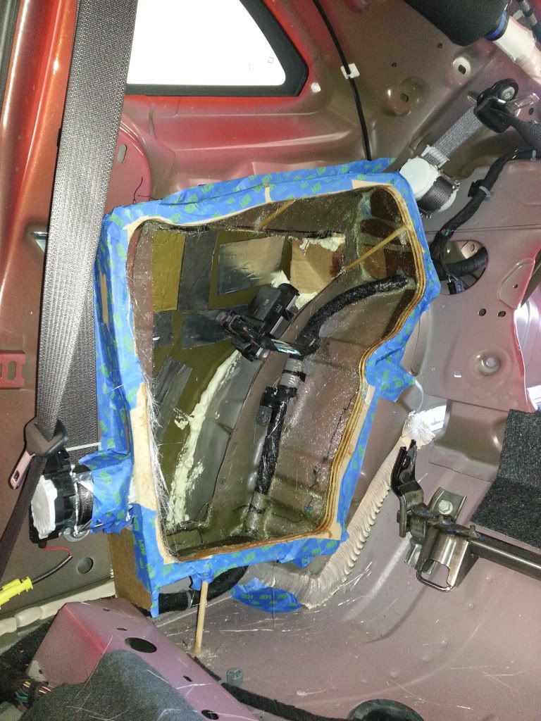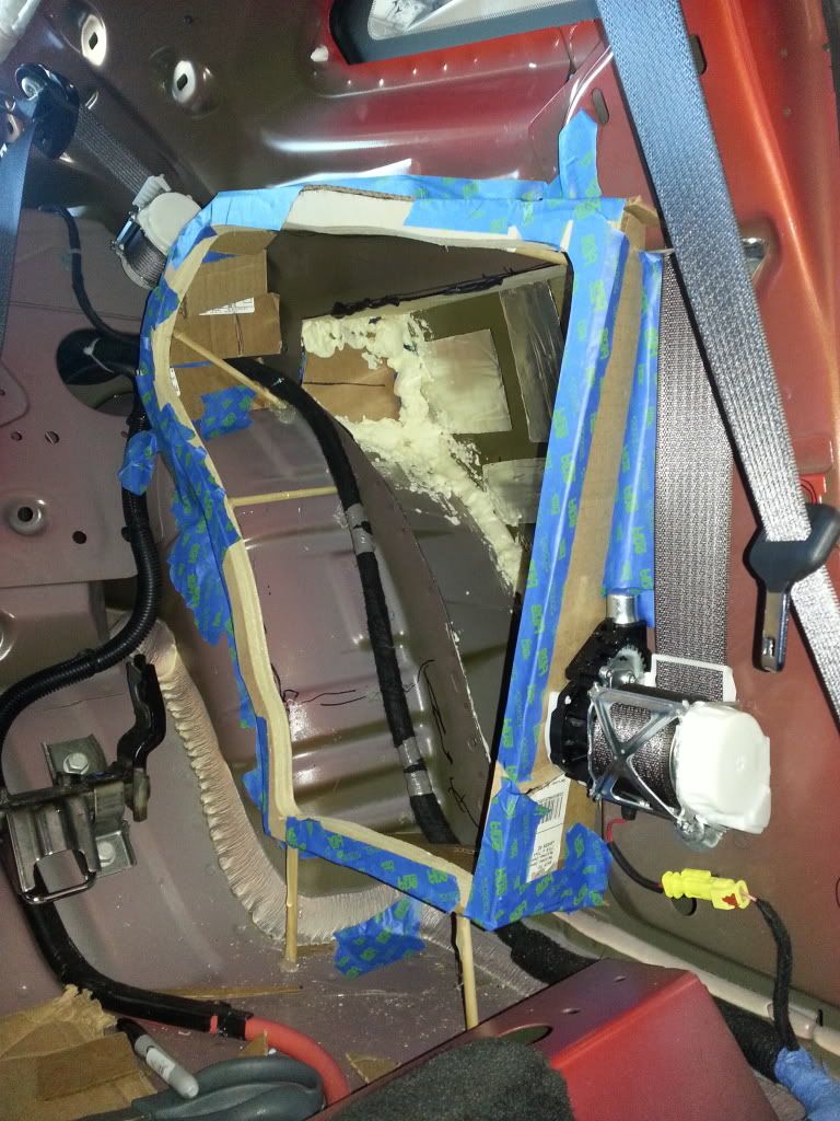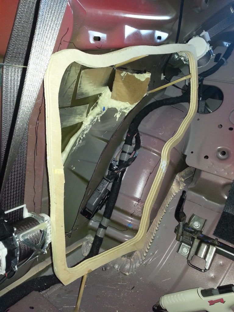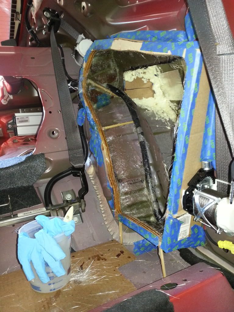 on the b pillar rail side, i took foam/cardboard and sealed up the areas that i could, same for the rear of the car moving towards the trunk. what i couldn't seal up in these three areas, I used some expanding foam to do the rest, and i'll glass over (or milkshake) over everything to ensure strength and a complete seal.