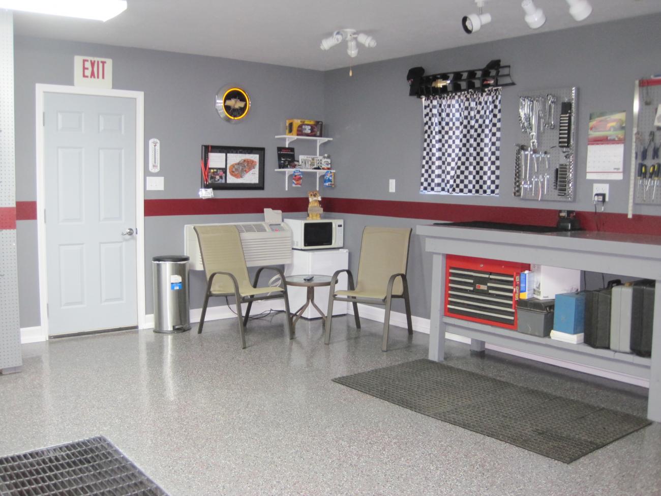 Here's my garage. It's nothing fancy yet. Still putting up the pegboard and racks and such, but yeah.