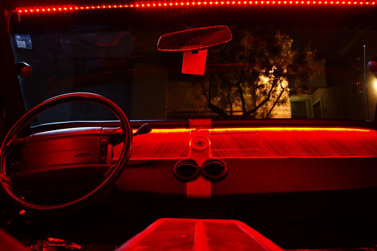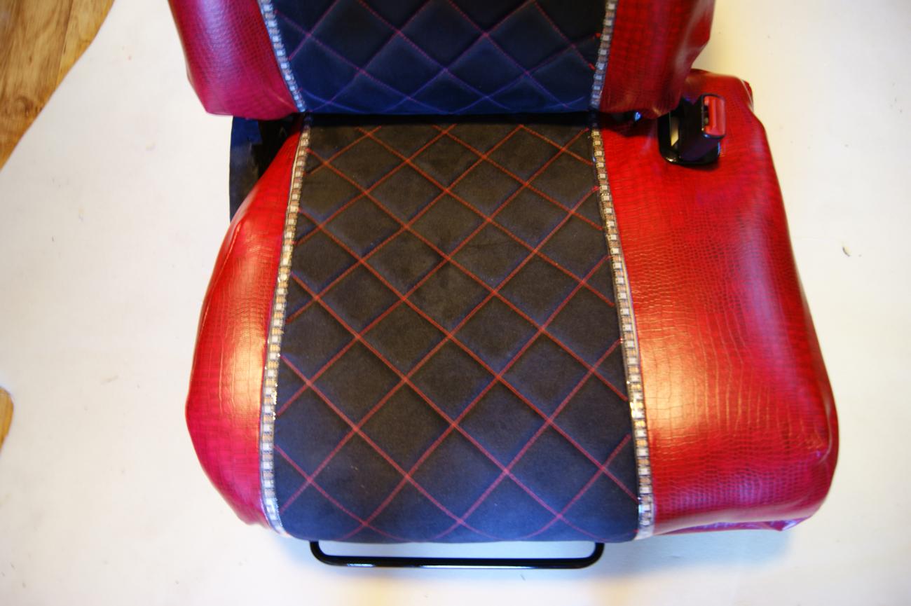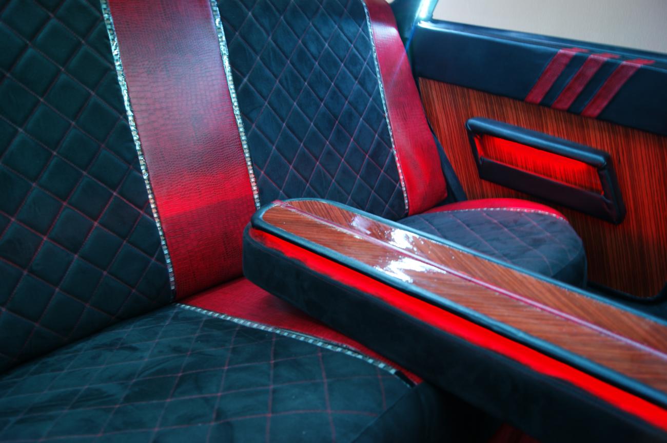I have finished the dash, my version of the Bugatti. I totally transformed it and gave it a near factory level of fit and finish. The dash face itself glows ethereally I even included pic's of old dash and all torn apart. Yes, I kept driving with no dash These pictures are not all up to date... Headliner is also in. With clear vinyl and custom pattern it has 15 pieces of fabric I stitched together. Of course it lights up and has the side stripes doubled for a cool airplane type look ![]() Custom fitted fire thorn red carpet is also in Look closely and you can see every bit of blue plastic has been covered in black Suede. Look closer and you can see a set of Hertz MLK 320 components (2 sets) and I have 3,000 watts RMS now to 12 speakers. Better than a concert and not one rattle ![]() Finally you will see I have started on the final bit of interior, the seats. Whether they have LED's or not they are epic. That's black suede where you sit and red alligator trim. CHECK OUT THAT DIAMOND STITCH BITCHES!!! Yup, I'm all man