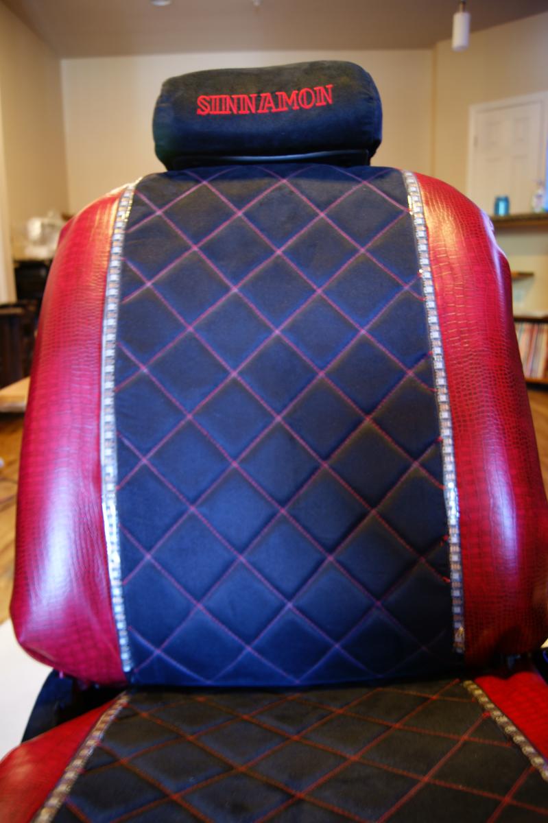 If you look closely every single bit of blue plastic has been covered by black suede. Headliner is in. Rear deck is re done and I'm finally happy with it. Heck even all the seats are done, well cept the one I use daily ![]() Still gotta do drivers seat, wrap steering wheel and ugh, seatbelts ![]() Oh, check out the front head rest, Sinnamon finally has her name