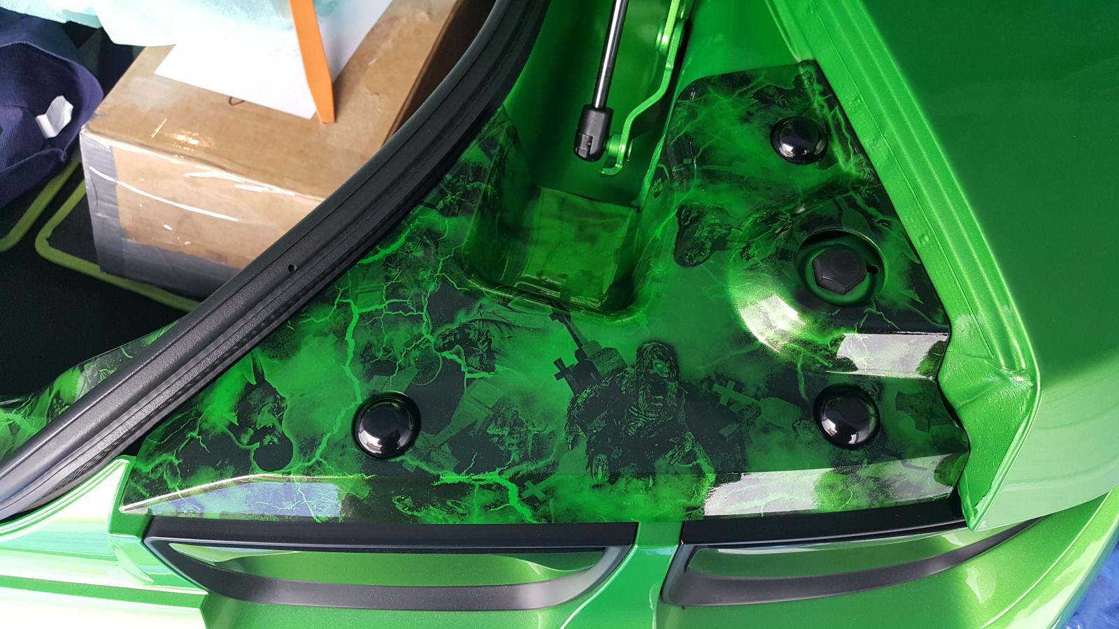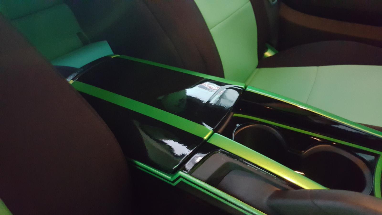 Got my new side Dash covers in , custom painted Black and striped in Synergy Green , done by Lupe at river City creations ... Next on the list is , new Door handles painted Satin Black .... __________________