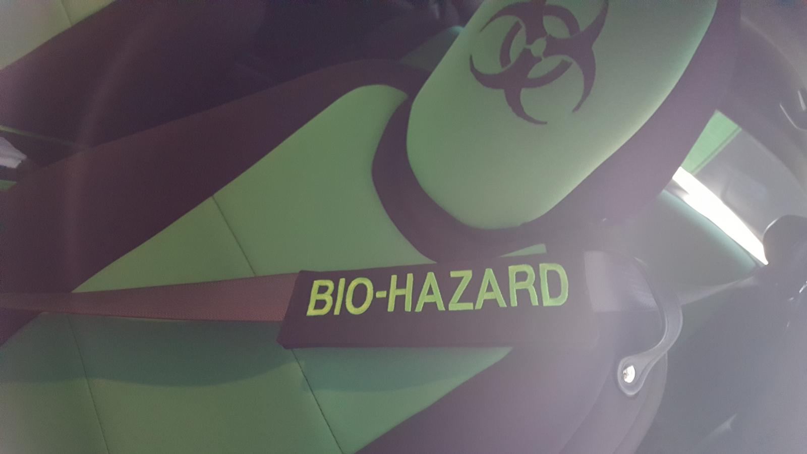 BIO-HAZARD , Got the new custom made seat belt shoulder pads in and the new Key Fob . They turned out great , Very happy .