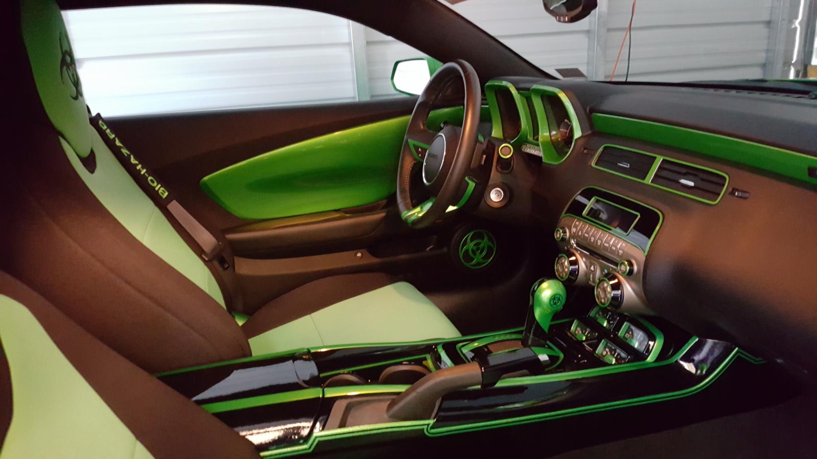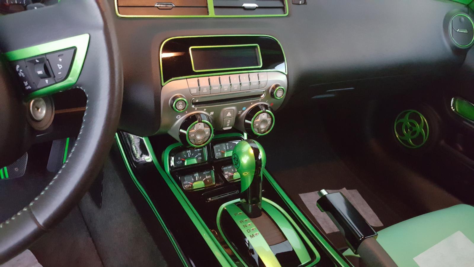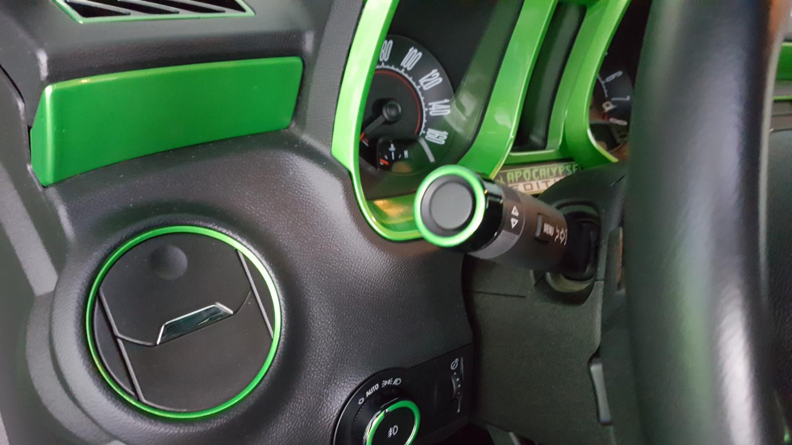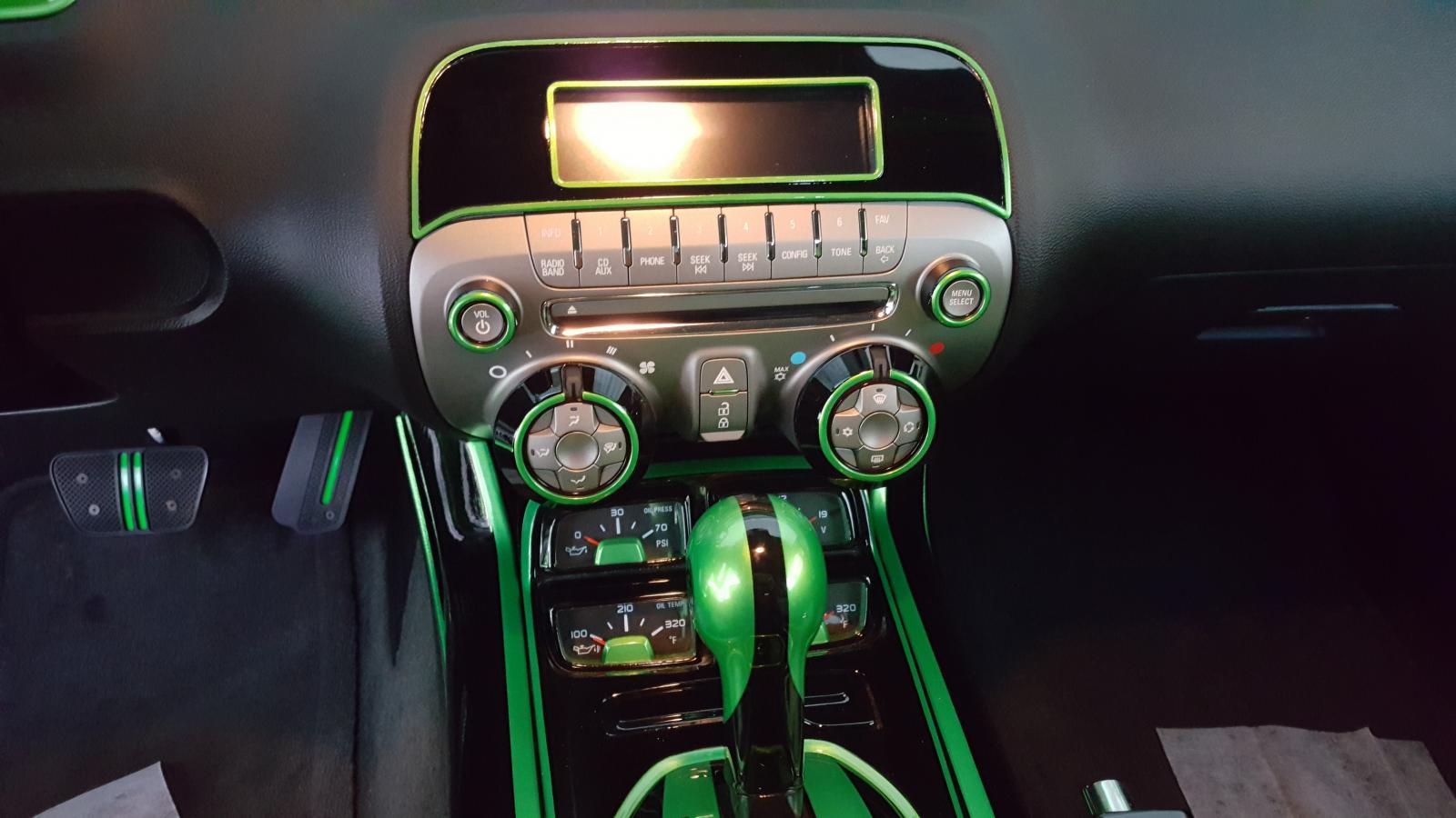 I did a lot of detail stuff and went crazy with Lupe from River city creations .And then pick up some stealth Black hose clamps for the CAI , so I could get the shinny metal out of the engine bay ...Next is a new Green Air Filter ... Here's my list Item Price Qty Price Camaro Trunk Latch Cover 2010-2015Item #: RCC-202 Choose Color: Black Stripe color: Synergy Green Metallic Side Dash Covers Item #: RCC-085 Choose Color: Black Choose Color of stripes if wanted: Synergy Green Metallic Trunk Latch PullItem #: RCC-100 Choose Color: Black Stripe color: Synergy Green Metallic Custom Painted A/C Control Knob CoversItem #: BC-001-1 Main overall color: Black Stripe color: Synergy Green Metallic i understand that i am only receiving 2 A/C knob covers: i understand that i am only receiving the 2 A/C knob covers Billet Door Locks (STOCK)Item #: BC-009 Choose Color: Black Custom Painted Head Lights Knob Item #: BC-015-1 Main overall color: Black Custom Painted Radio Knobs Item #: BC-024-1 Main overall color: Black Stripe color: Synergy Green Metallic Custom Painted Turn-Signal Knob Bezel Item #: BC-034-1 Main overall color: Black Custom Painted Windshield Washer Control Knob Bezel Item #: BC-037-1 Main overall color: Black