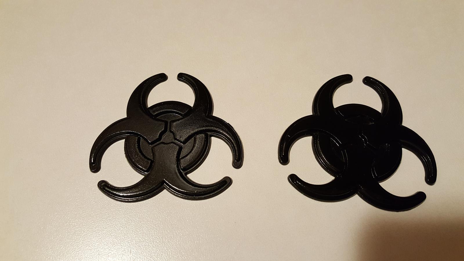 Did some painting on some Bio-Hazard symbols to replace the chrome ones on my trunk lid .. __________________