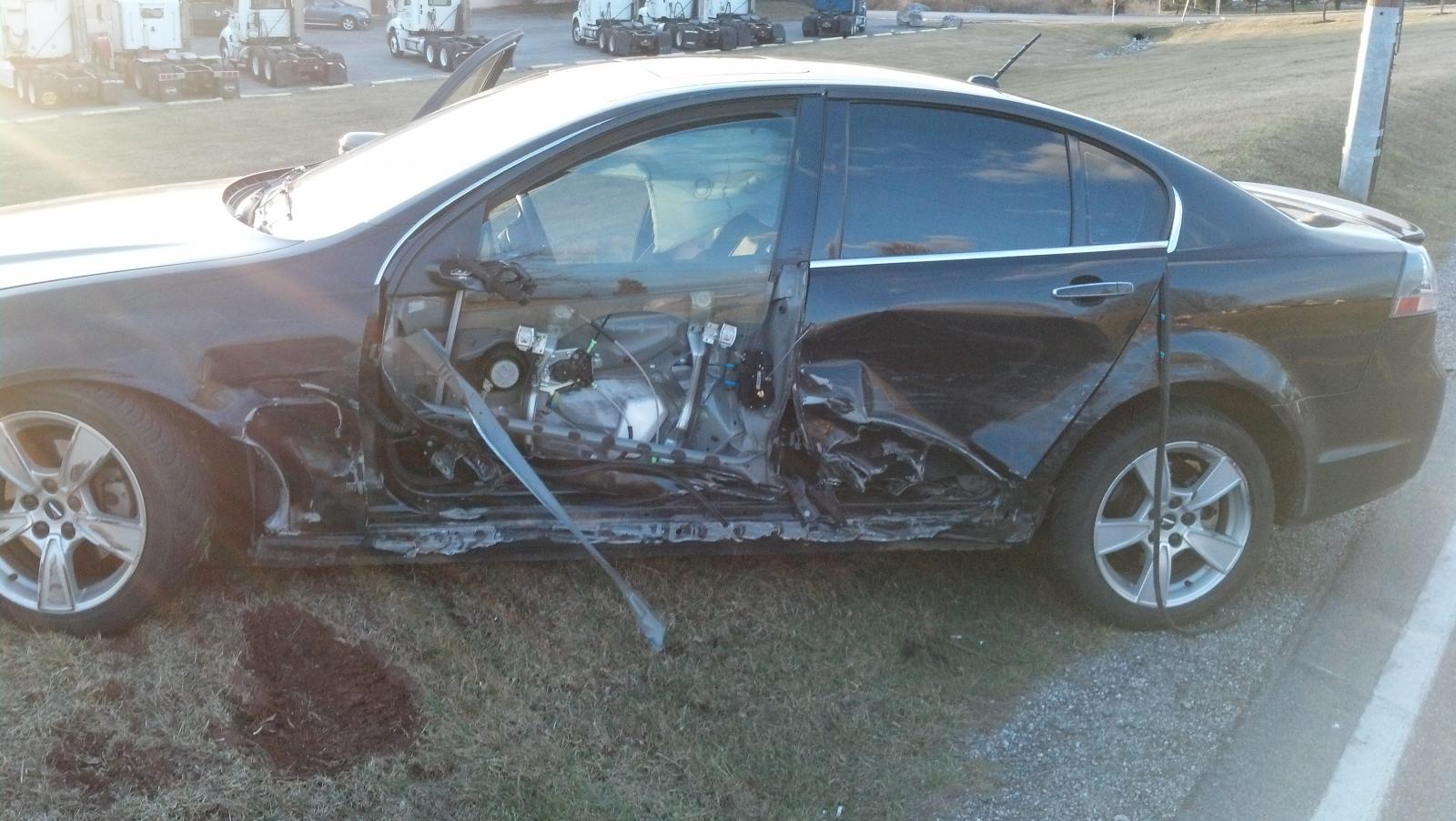 I never thought I'd part with her, but when a drunk driver gets behind the wheel it is never a good thing. I'm just glad I still have my wife. BTW, the car is facing the opposite direction it was traveling when it got hit.