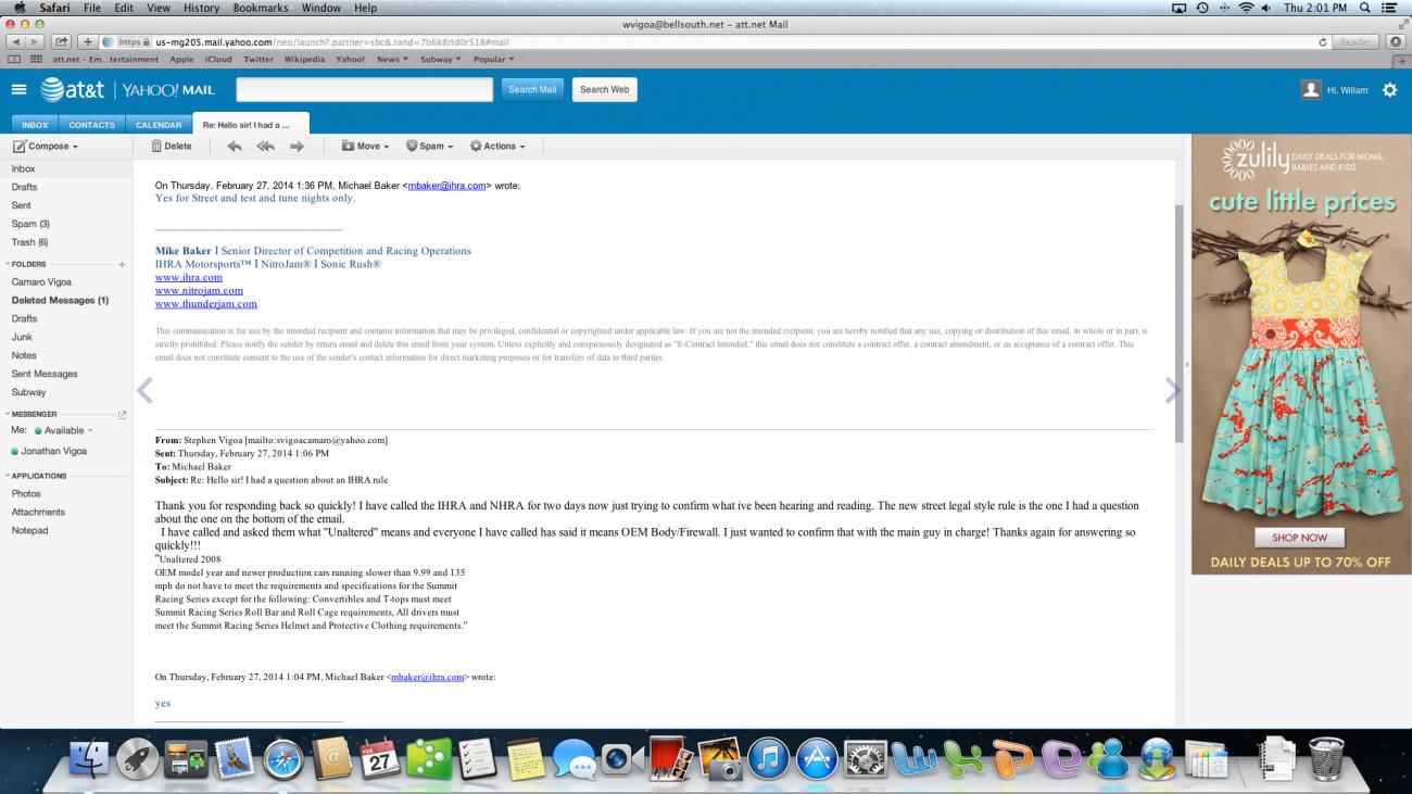 which is totally cool. There is a thread here somewhere about a NHRA tech session in Las Vegas where a "head guy" stated that unaltered means factory stock with no mods. He said even a cold air induction or tire swap would be altered according to him. This email will silence the crazy talk. My local tracks have been totally cool with the new rule and I never get harassed. Richmond dragway, Virginia Motorsports park, and Maryland International raceway are all on board with the 10.0@135 being the new cut off for a bar/cage.