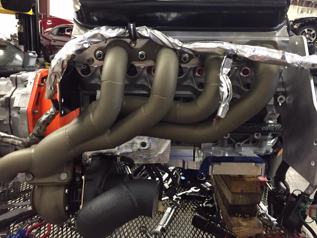 So, a lot more progress made today... Intake which still is not being shown is bout 65 % done... Corey is doing that... I did the final cleanup, fitting and installation of the turbo manifolds and turbos today... Everything is getting heat wrapped and insulated to the inth... I apologize for the multi posting but the iPad only allows one pic per post on this website...