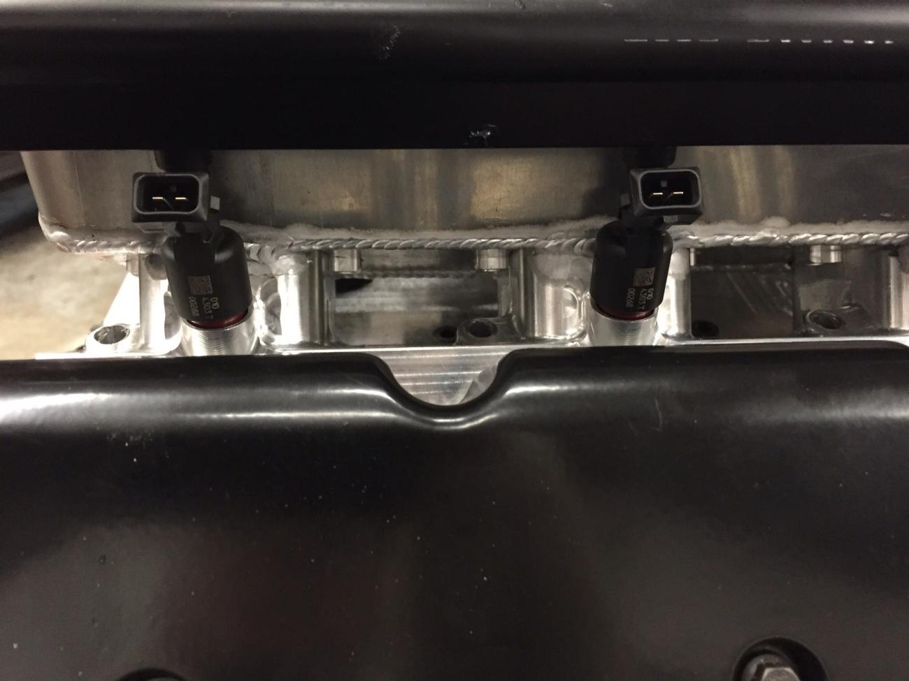 We made some more progress today... Corey got the second Weldon fuel pump installed and he built the new fuel rails. These are 3/4 ID rails with FIC 230 lb/hr low impedance Siemens DEKA race injectors...