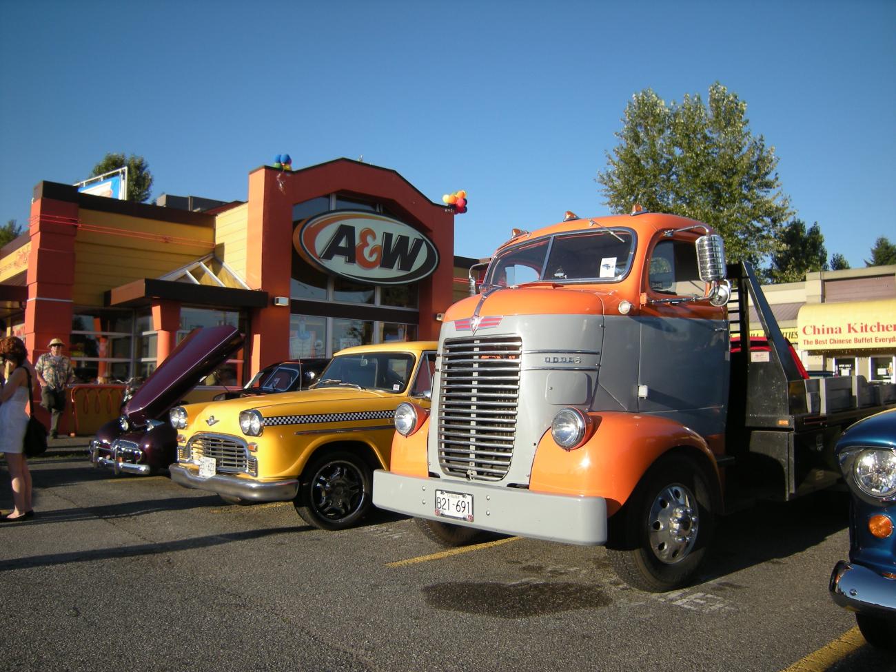 Last night it was the annual Cruising the Dub (A&W) for the cause to raise $$$$ for the fight against MS. Every A&W from coast to coast up here in the Great White North donated $1 from every Teen Burger sold to the MS Society. Colleen and I took Pumpkin to the Maple Ridge Dub to do our part.