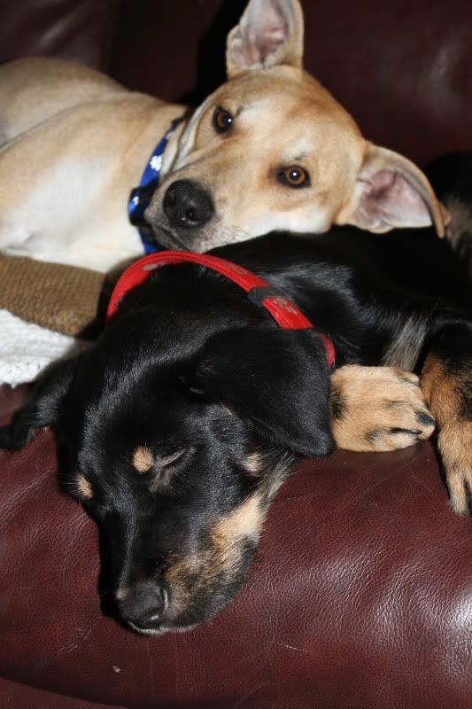 Slowkray, I love that mix! Gundogs are my favorite anyway, but that mix could be very special. Always take your camera with you when you're out and about with that dog. He's got fun written all over his face! 3CamaroOnHand, those two look like best buddies! I hope you add more pics soon. Orange Krate, those two little ones of yours are adorable. It's clear they were both supposed to be yours! It's amazing how things always work out!
