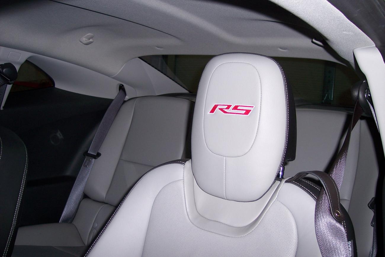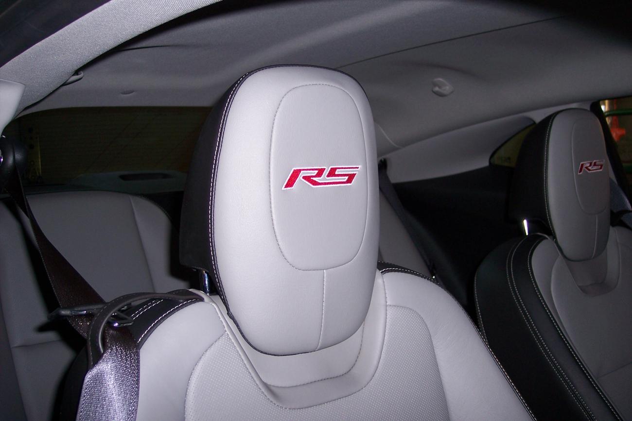 Sorry! Still no pics, I guess I'm download challenged. But mine look like Top Thrill's because I too have the gray/black interior. I showed them off last weekend at the Route 66 show in Springfield, IL. and everybody loved them, thought they should be factory standard. Mine are bright red letters with medium silver outline.