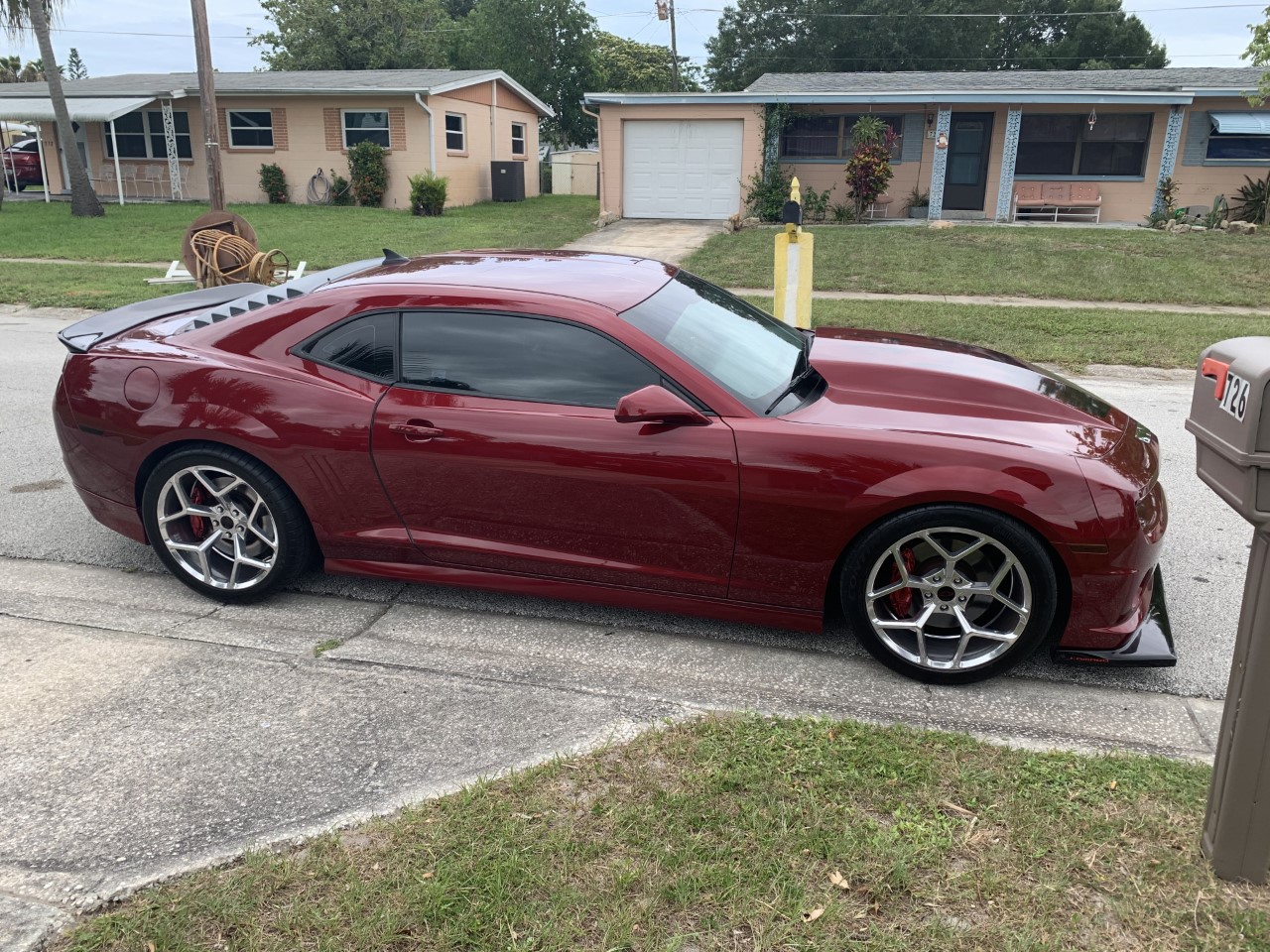 Yea, the gun metal would look cool too on your Camaro. I found the guys email and sent him a note to see if he would send me some more pics of his Camaro with my wheels on, when he does, I will post them for ya. It looks really nice!! lol yea, she is pretty low! Funny thing is I only went down 1.25, and I guess over the years the springs have sunk a bit more, but the ride is still great! And NOTHING hits or drags over speed bumps and such either! At one of the shows I attend we park in the grass and I have to go slow as the front splitter just barely "mows" the grass on the way in!! Haha.. And that pic above, she is parked in REAL grass at a park here by my house. I would never take her in the weeds!! lol.