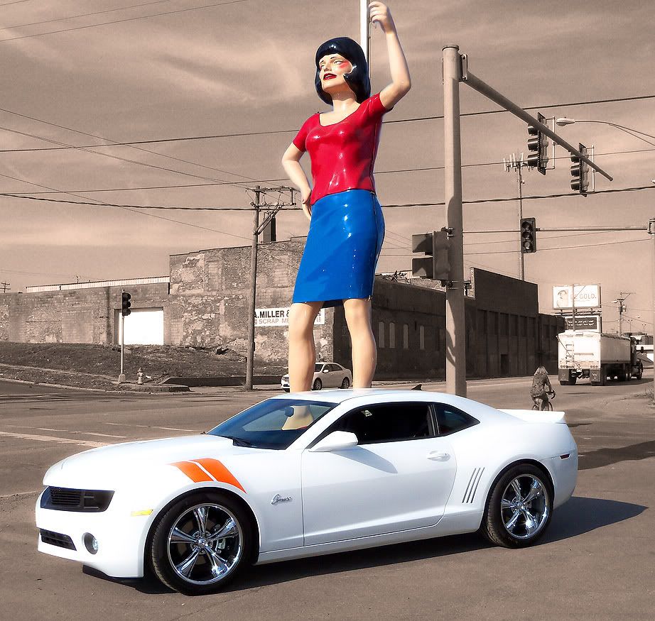 This might be an optical illusion. If you look very closely and squint your eyes a little, you can see a car in the picture that looks a lot like a new Camaro SS/RS! lol