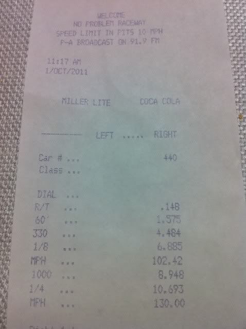 Lets just have fun. We all enjoy running our cars down the 1/4 mile. That's all that really matters.